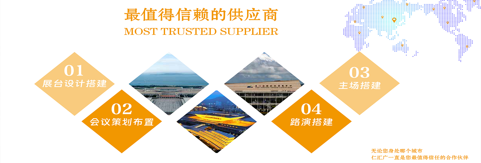 廈門仁匯廣展覽服務有限公司是一家從事展覽展示,特裝制作搭建,會議策劃布置,主場搭建,大型活動工程制作搭建,戶內外路演搭建等專業公司。